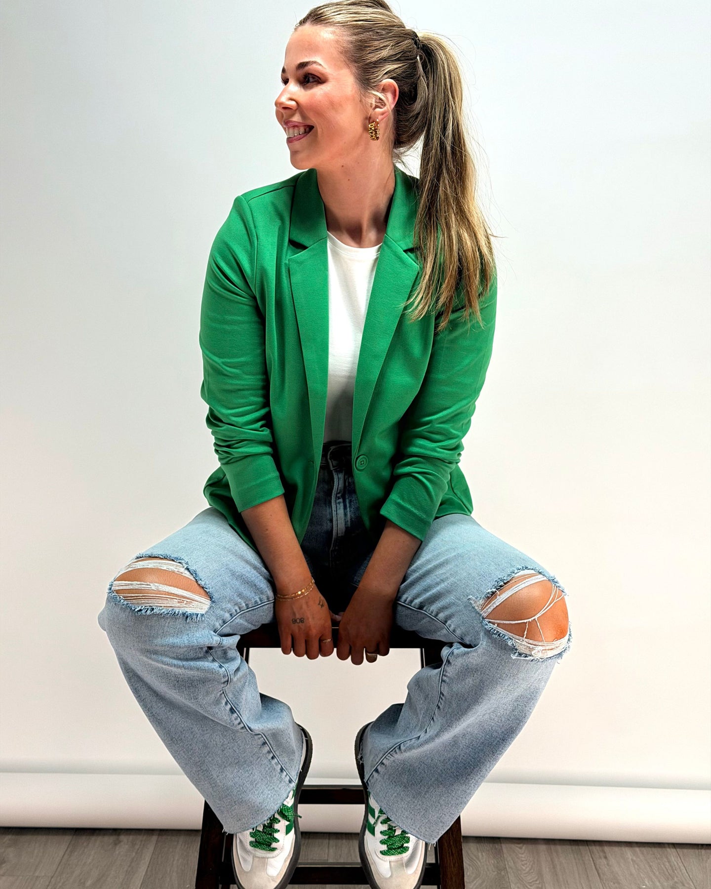 Brighten up your spring wardrobe with the Rizetta Blazer by b.young! This vibrant green blazer features a classic single button front closure, delivering a bold pop of color and modern sophistication to any outfit. Perfect for the office, events, or elevating your everyday style, the Rizetta Blazer is your go-to statement piece this season. Make an unforgettable impression—shop the Rizetta Blazer at our boutique today!