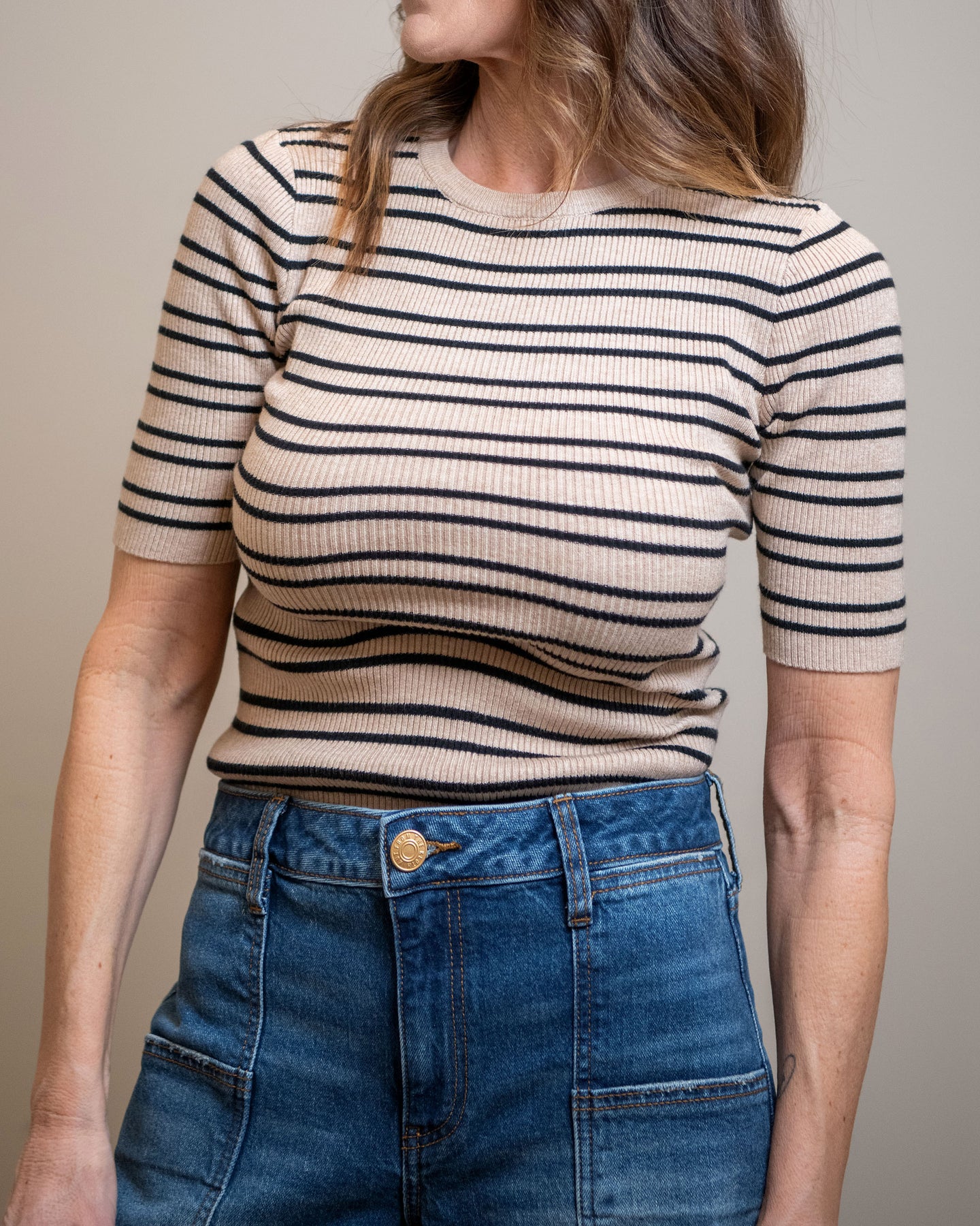 Refresh your wardrobe with the Acama Sweater by Pink Martini. This short sleeve fitted sweater is available in two stylish options—classic navy stripe or chic beige stripe—making it the perfect versatile staple for any season. The flattering fit and timeless stripes pair effortlessly with jeans, skirts, or trousers, whether you’re heading to the office or out for weekend adventures. Elevate your everyday style with the Acama Sweater, your new go-to for polished comfort and effortless charm.