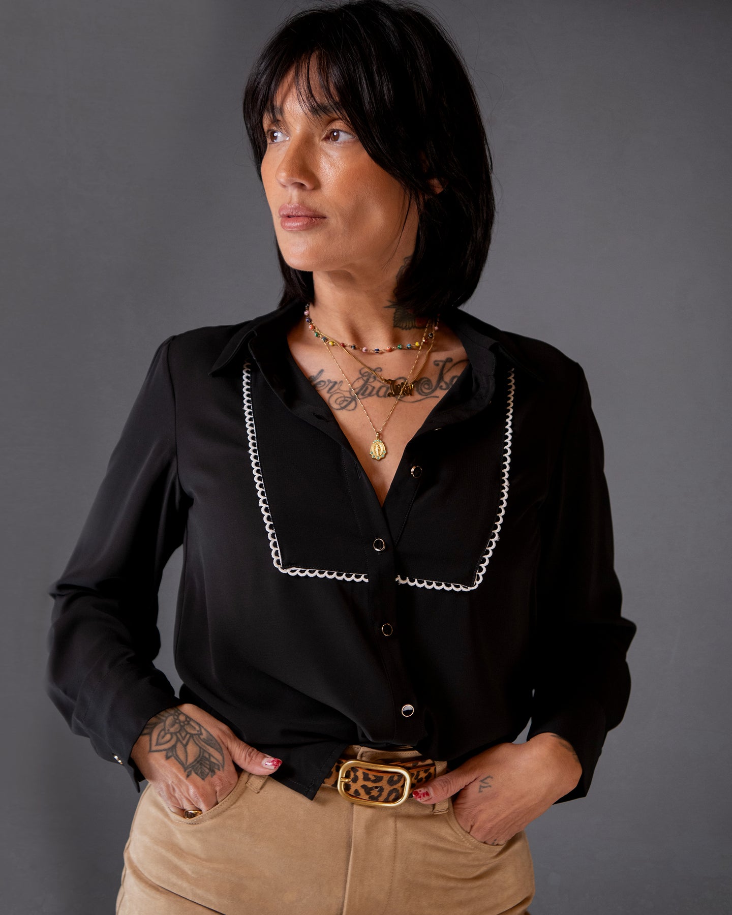 Update your wardrobe with the Avianna Top by Velvet Heart. This classic black button-down long sleeve top is a must-have for effortless style and versatility. Perfect for work or weekend wear, its timeless design pairs easily with anything from jeans to skirts or layered under your favorite jacket. The Avianna Top brings a touch of sophistication and ease to every outfit—an essential staple you'll reach for again and again.